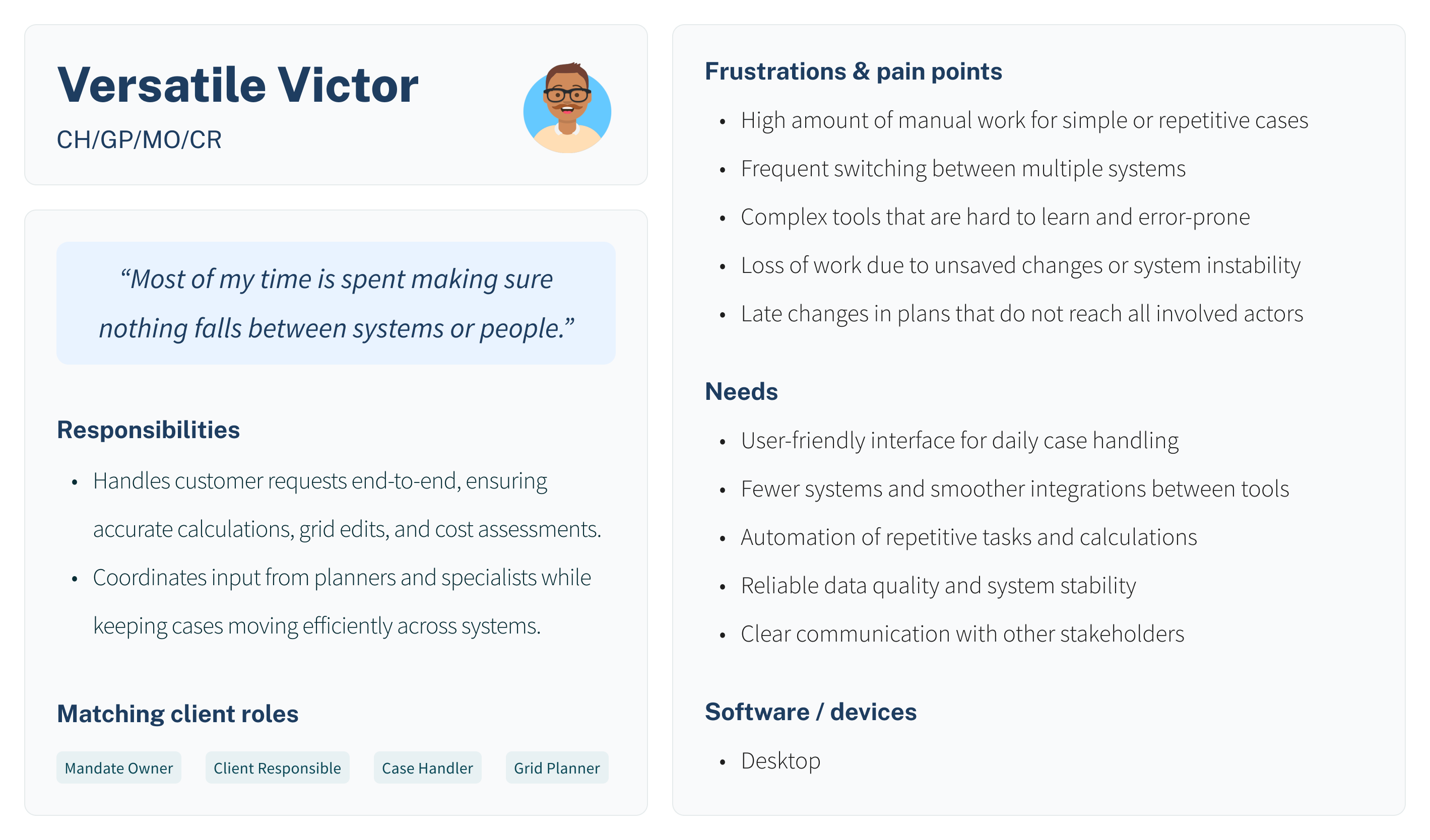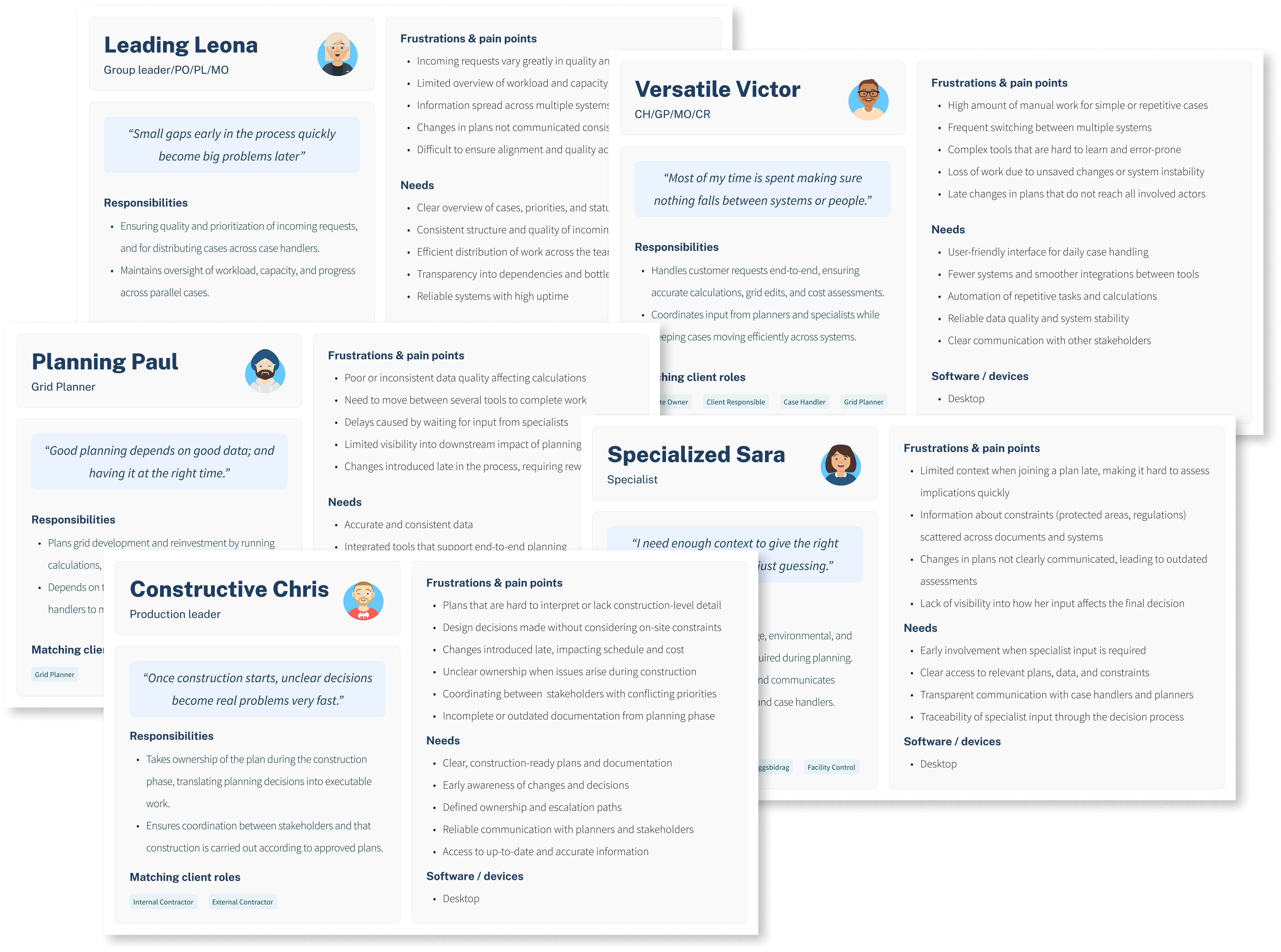 By mapping the workflow — from a grid expansion initiated by the company to a power upgrade request from a private customer — it became clear that a scalable and integrated solution was possible. I realized that my product, Grid Planner, and another team’s tool — designed for end customers to submit requests online — could be strategically connected.